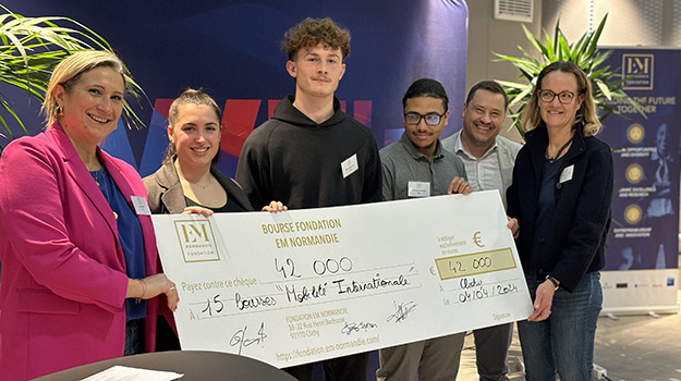 Depuis 2023, la Fondation EM Normandie organise chaque année une cérémonie de remise des bourses étudiantes sur le campus parisien à Clichy. Cet événement célèbre le parcours exemplaire de ses étudiants boursiers et permet de remercier les donateurs pour leur engagement en faveur de l'égalité des chances au sein de la communauté EM Normandie. Ce moment d'échange et de partage permet aux donateurs et aux boursiers de s'exprimer lors d'une soirée conviviale, qui se termine autour d'un verre de l'amitié.